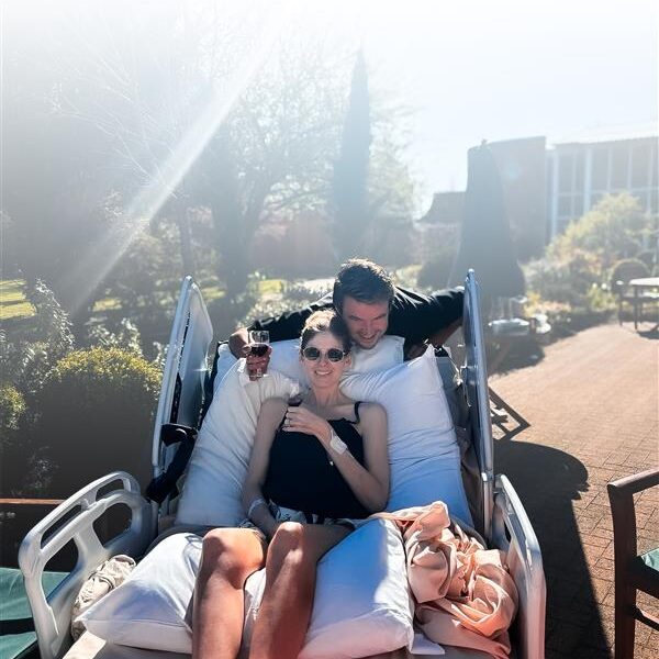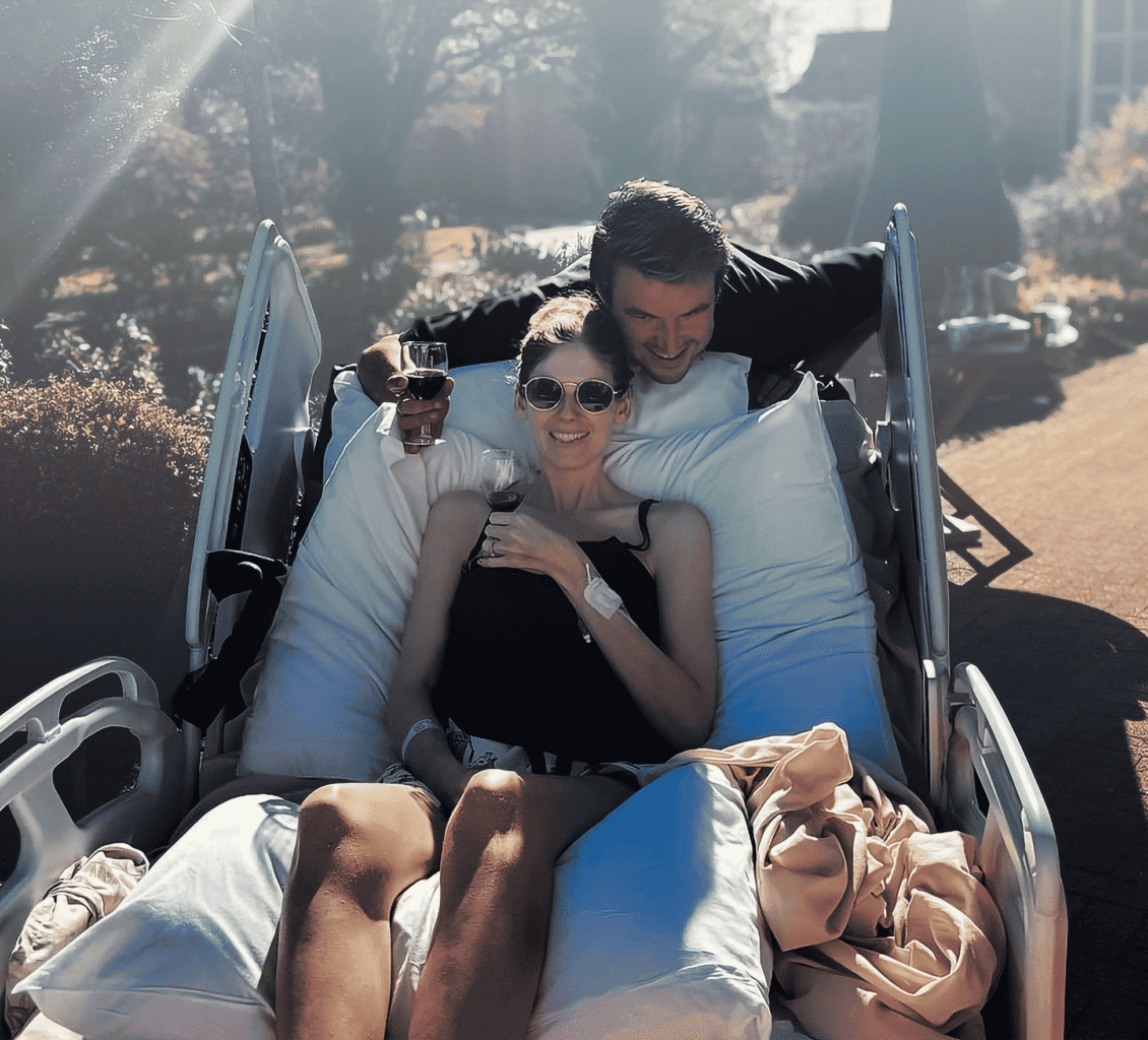 I remember sipping wedding wine with our loved ones. Watching Vic’s best mates and her sisters attempting to wash her hair (Vic loved her hair!). Sitting with Vic as she drank flavoured ice in the garden, with her sunglasses on and the biggest grin.